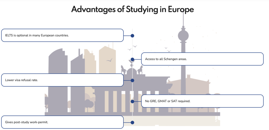 Europe has always been a popular choice of study destination among Indian students. Multiple reasons contribute to this. (Study In Europe) A historically significant continent, the culture of Europe is rooted in art, architecture, film, music, economics, literature, and philosophy. What’s more? the continent offers a high standard of education, quality lifestyle, and cultural diversity. It even offers discounts to international students on travel, shopping, restaurants, cinema, etc.